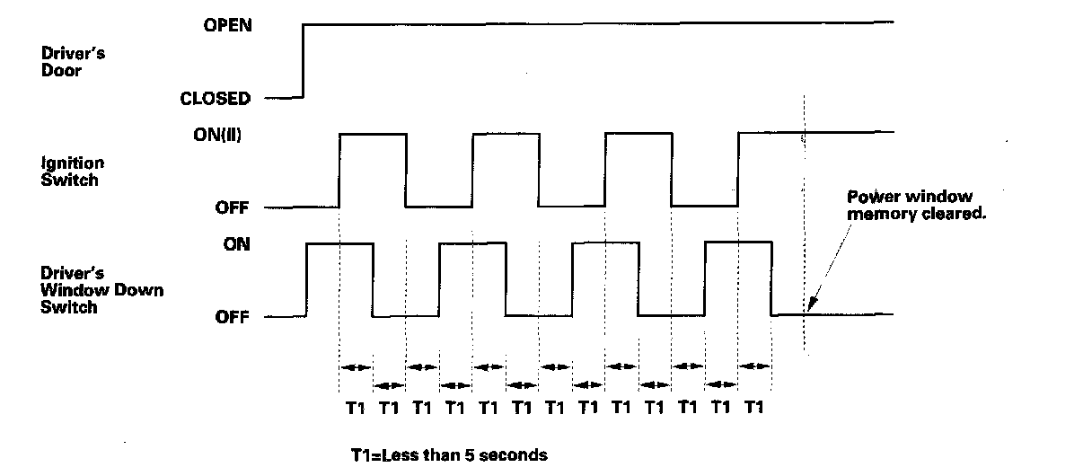 If the window still does not work in AUTO, repeat the procedure several times, paying close attention to the 5 second time limit between steps. If it still does not work, go to B-CAN System Diagnosis Test Mode A. Troubleshooting - B-CAN System Diagnosis Test Mode A