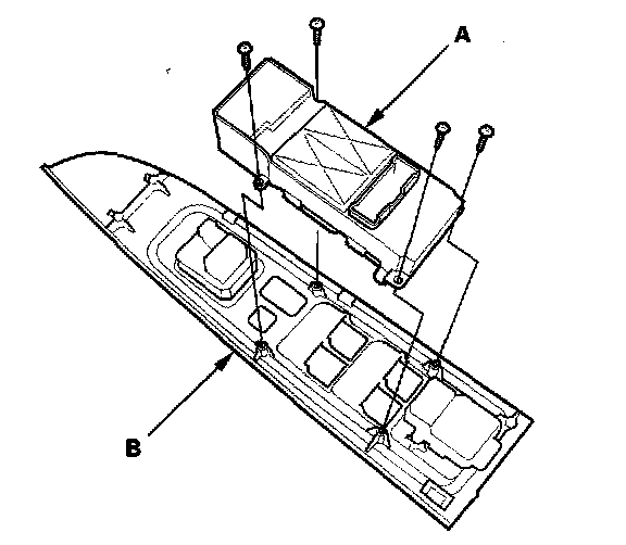 2. Remove the four mounting screws, then remove the master switch (A) from the switch panel (B).