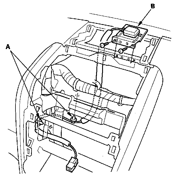 3. Remove the wire harness clips (A), screws and GPS antenna (B).
