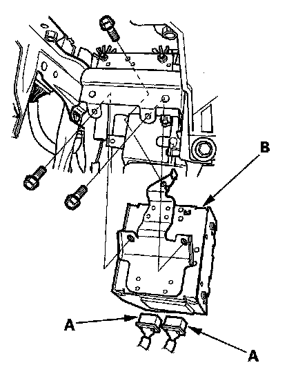 3. Disconnect the connectors (A) from the stereo amplifier (B).