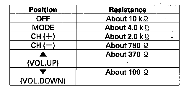4. If the resistance is not as specified, replace the audio remote switch.