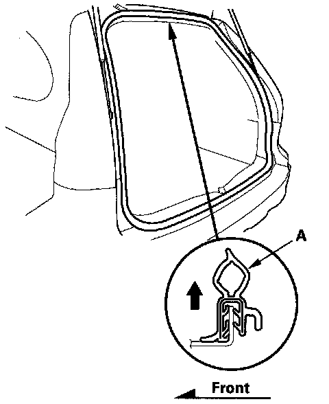 Tailgate Weatherstrip Replacement1. Remove the tailgate weatherstrip (A) by pulling out on it.