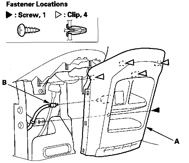 3. Gently pull out upper of the dashboard center lower cover (A) to release the clips, then remove the cover.