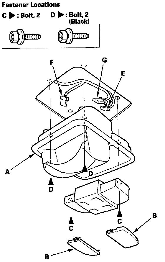 2. Open the console, and remove the bolts (D).