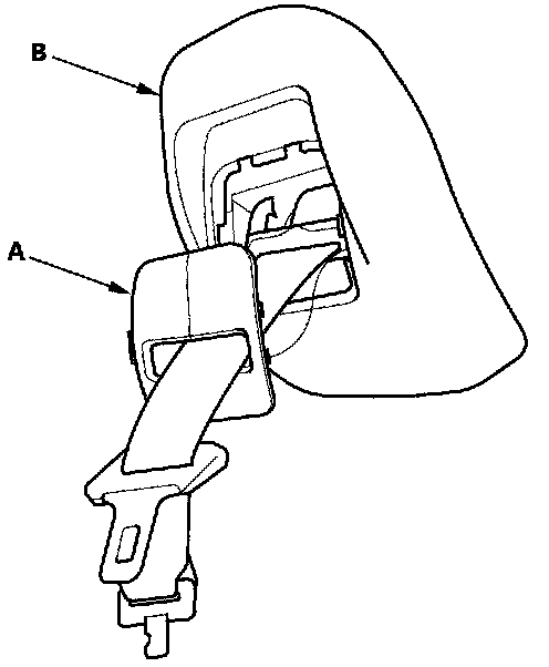 5. Remove the cap (A) from the center seat belt retractor cover (B).