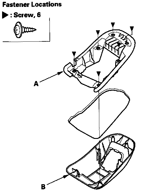 9. Remove the screws, and remove the retractor cover bracket (A) and retractor cover (B) from the headliner.
