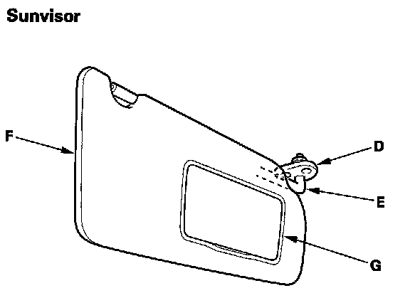 - Any cracks in the sunvisor base (F)