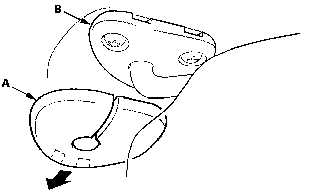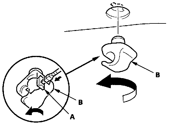 2. Remove the sunvisor cap (A) from the bracket (B). Turn the cap, and remove it.