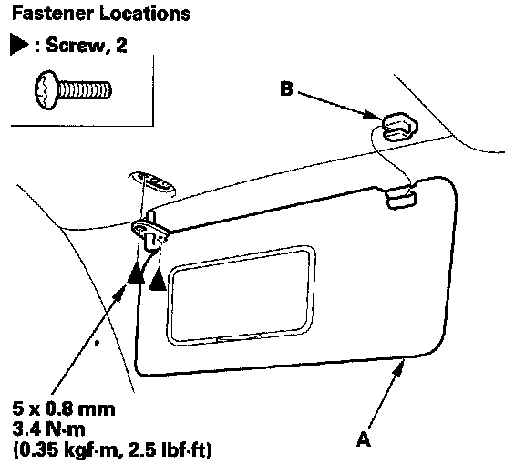 5. Install the sunvisor in the reverse order of removal, and note these items: