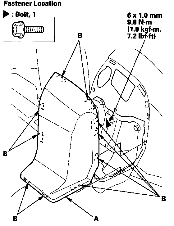 3. Using the appropriate trim tool, pry out on the upper portion of the lid (A) to release the hooks (B), then remove it. From the opening hole of the lid, remove the bolt.