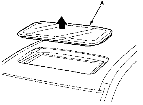 4. Remove the glass (A) by lifting it up. Do not damage the roof panel.
