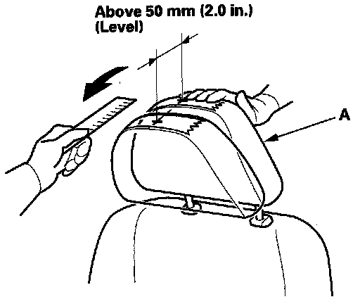 With a ruler, measure the level amount of the head restraint movement. The head restraint should move more than 50 mm (2.0 in.) without resistance. If it is less than 50 mm (2.0 in.), or the head restraint doesn't move smoothly, replace the seat-back frame assembly: