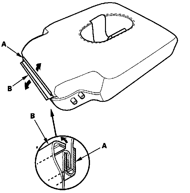 3. Release the hook (A), and pull back the edge of the armrest cover (B) all the way around, and remove it.