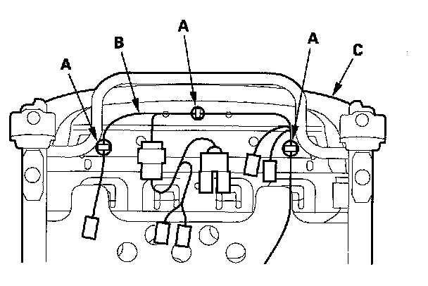 5. Detach the harness clips (A), and remove the seat subharness (B) from the seat cushion frame (C).