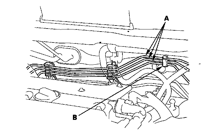 4. Remove the brake lines (A) from the clamp (B).