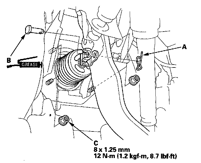6. Remove the lock pin (A) and the joint pin (B), then disconnect the yoke from the brake pedal.