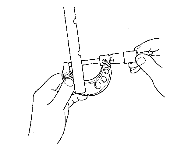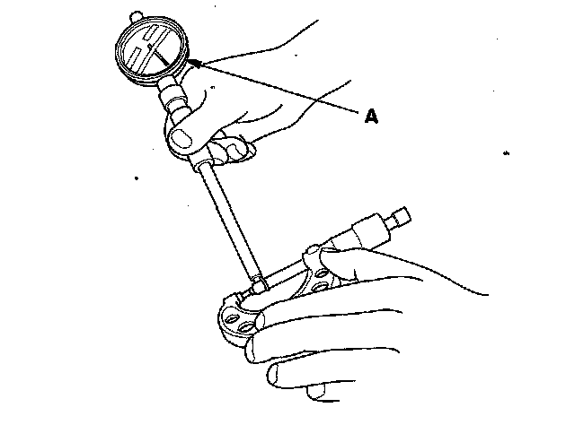 5. Measure the inside diameter of the rocker arm, and check it for an out-of-round condition.