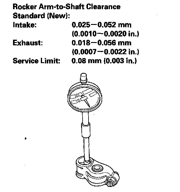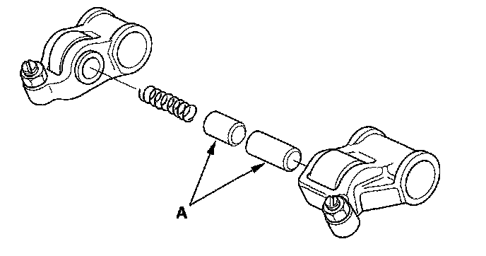 6. Repeat for all rocker arms and both shafts. If the clearance is beyond the service limit, replace the rocker shaft and all out of service limit rocker arms. If any VTEC rocker arm needs replacement, replace the rocker arms (primary and secondary), as a set.