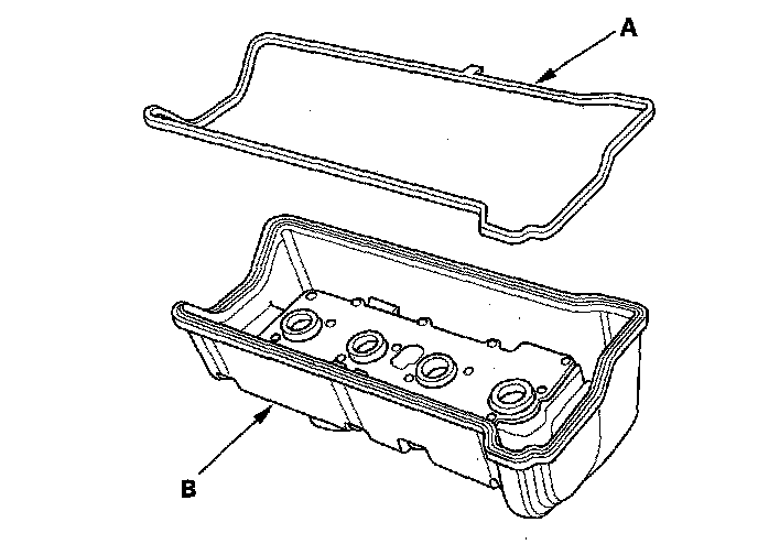 2. Install the head cover gasket (A) in the groove of the cylinder head cover (B).