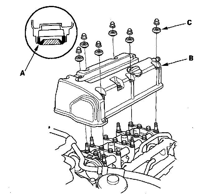 6. Inspect the cover washers (C). Replace any washer that is damaged or deteriorated.