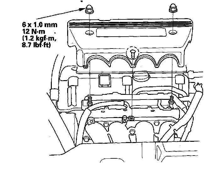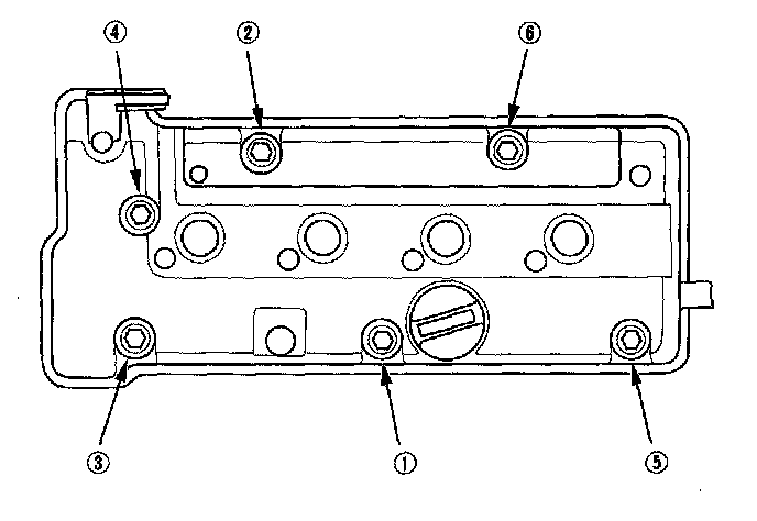 7. Tighten the bolts in two or three steps. In the final step tighten all bolts, in sequence, to 12 N-m (1.2 kgf-m, 8.7 lbf-ft).