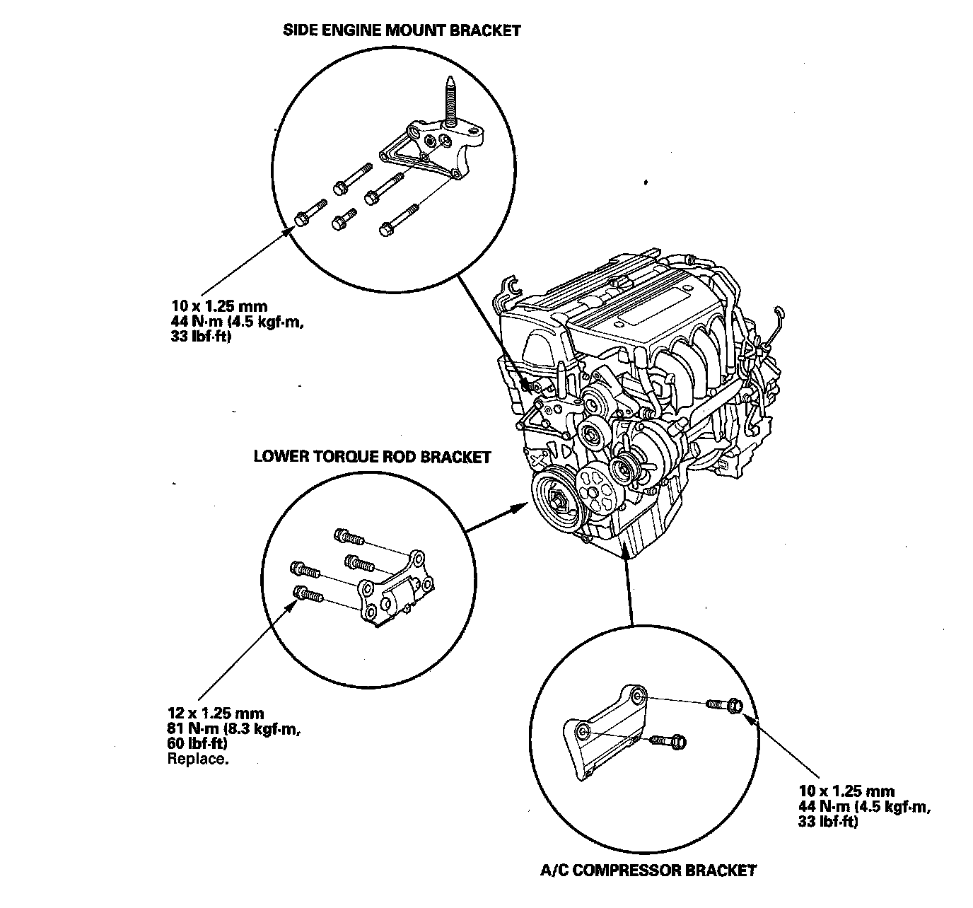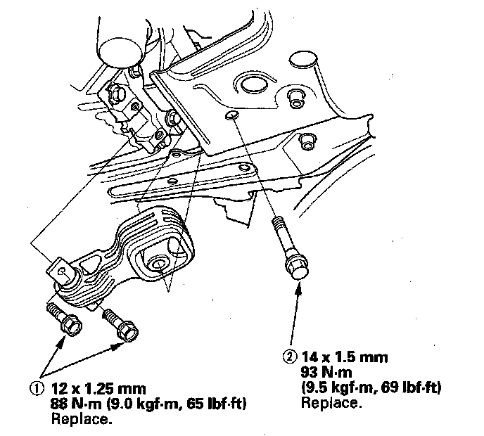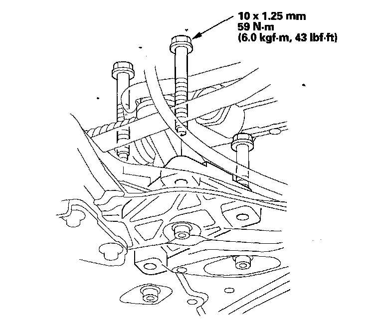 NOTE: Reinstall the mounting bolts and support nuts in the sequence given in the following steps. Failure to follow this sequence may cause excessive noise and vibration, and reduce engine mount life.
