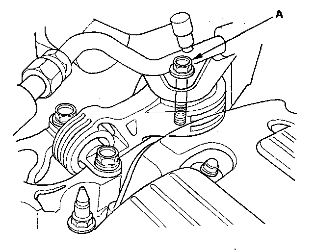 3. Attach the special tool adapter (VSB02C000015) to the threaded hole (A) in the cylinder head.