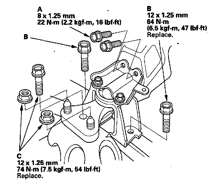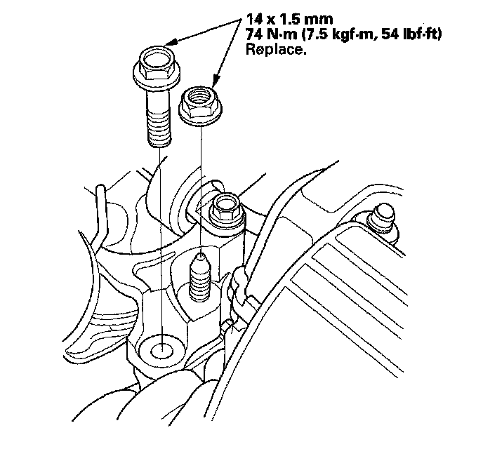 16. Loosely install the new 14 x 1.5 mm bolts.