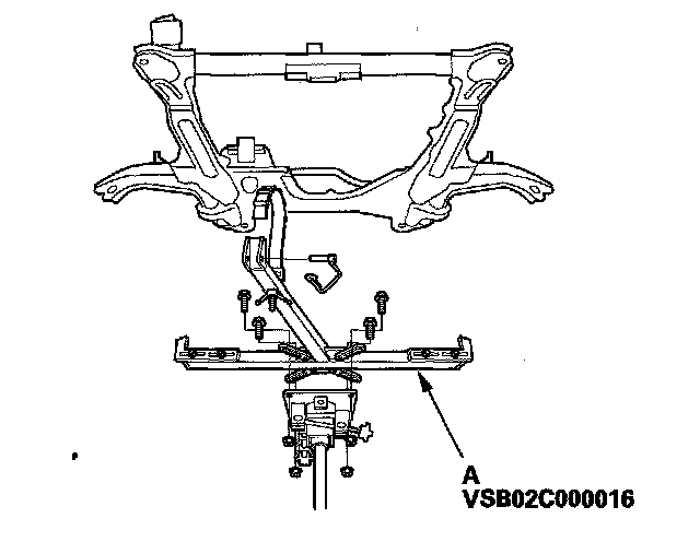 15. Using the subframe adapter (A) and a jack, raise the subframe up to body.