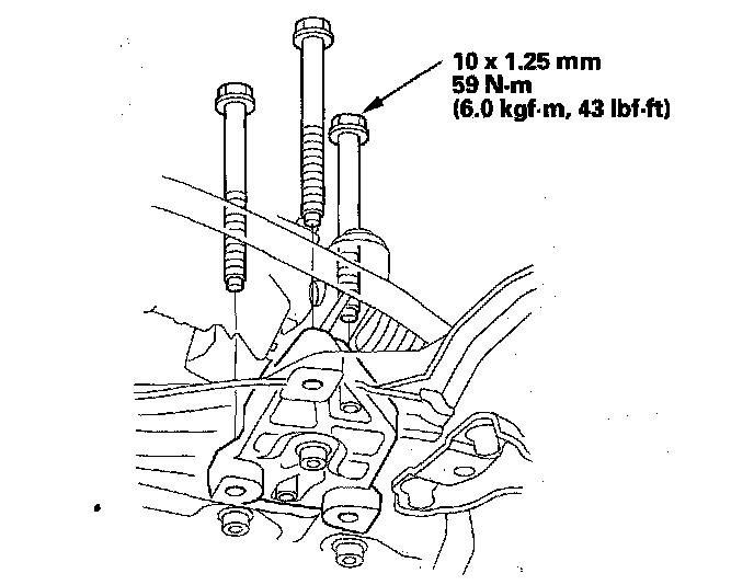 18. Tighten the new subframe mounting bolts (A) on both side.