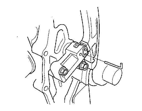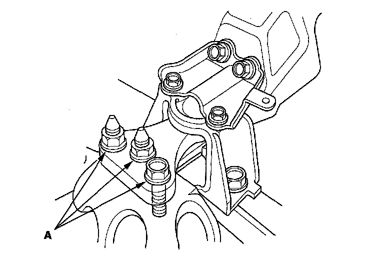 20. Install the side engine mount bracket (A), then loosely tighten the new bolt and nut (B), and loosely tighten the bolt (C).