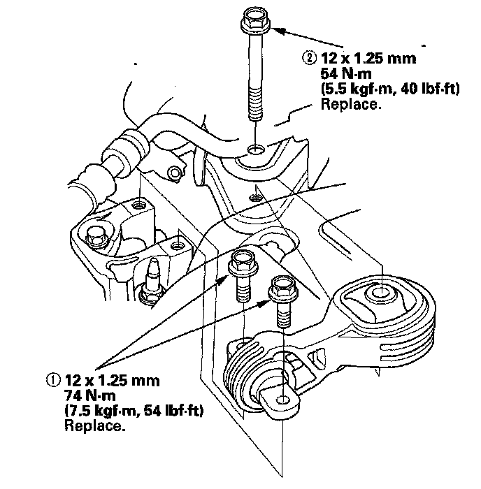 33. Install the upper torque rod, then tighten the new upper torque rod mounting bolts in the numbered sequence shown.
