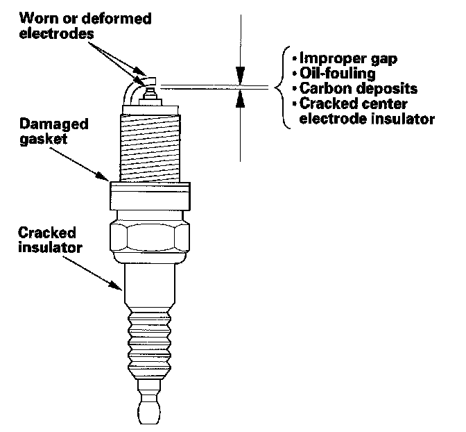 1. Remove the spark plugs, and inspect the electrodes and ceramic insulator.
