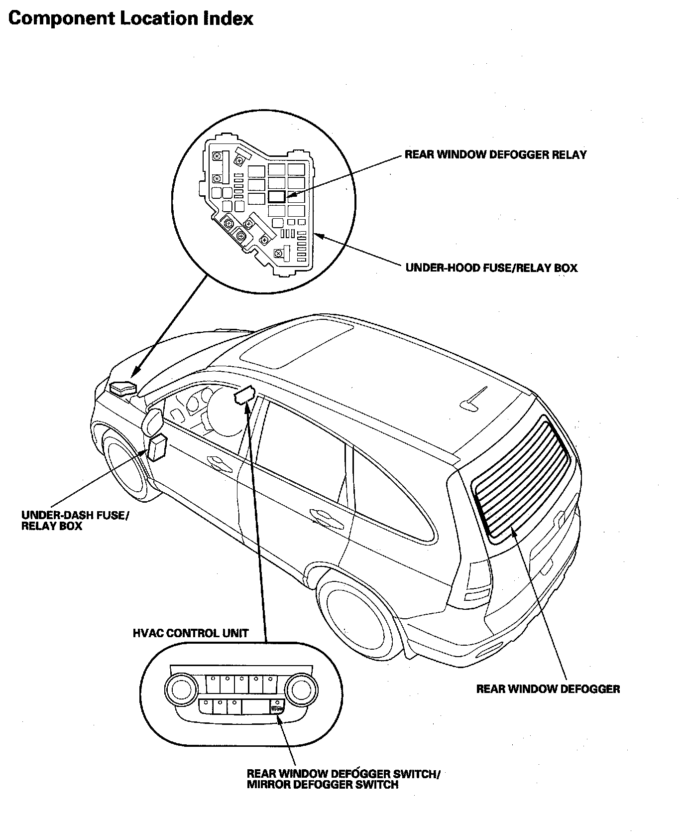 Rear Window Defogger Component Location Index: