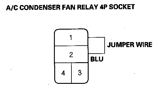 4. Connect the A/C condenser fan relay 4P socket terminals No.1 and No.2 with a jumper wire.