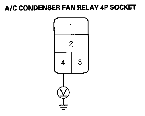 3. Measure the voltage between the A/C condenser fan relay 4P socket terminal No.1 and body ground.