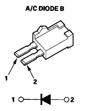 17. Using the diode setting on a DVOM, check for current flow in both directions between the A/C diode B terminals No.1 and No.2.