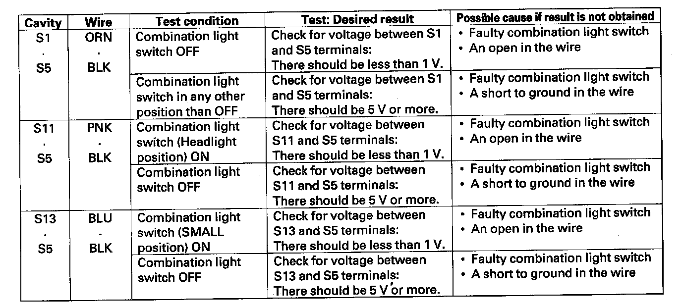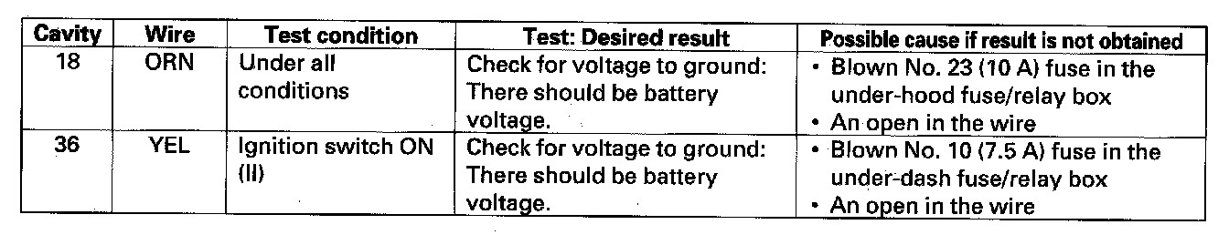 5. Reconnect the connectors, then make these input tests at the connector.