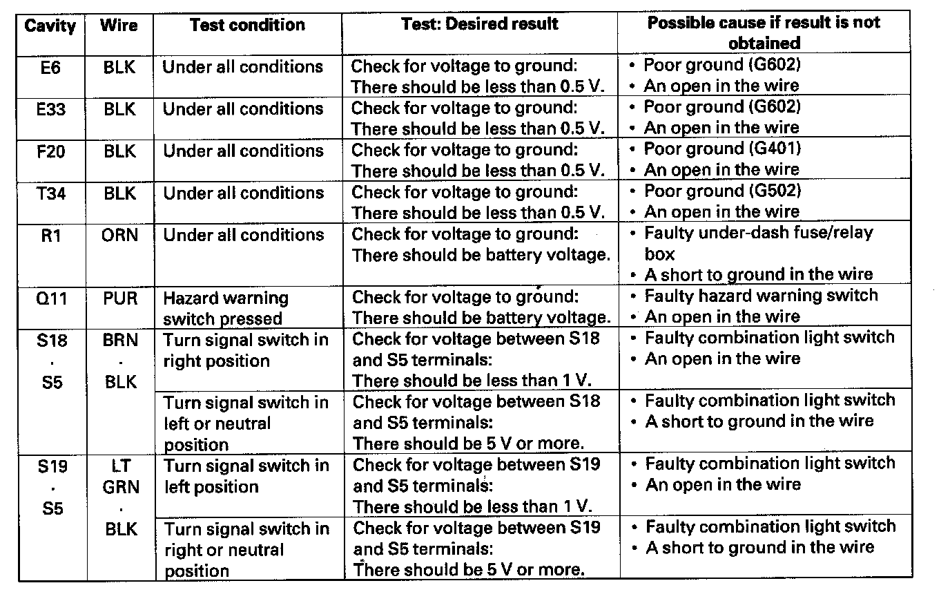 5. Reconnect the connectors to the under-dash fuse/relay box, and make these input tests at the connectors.
