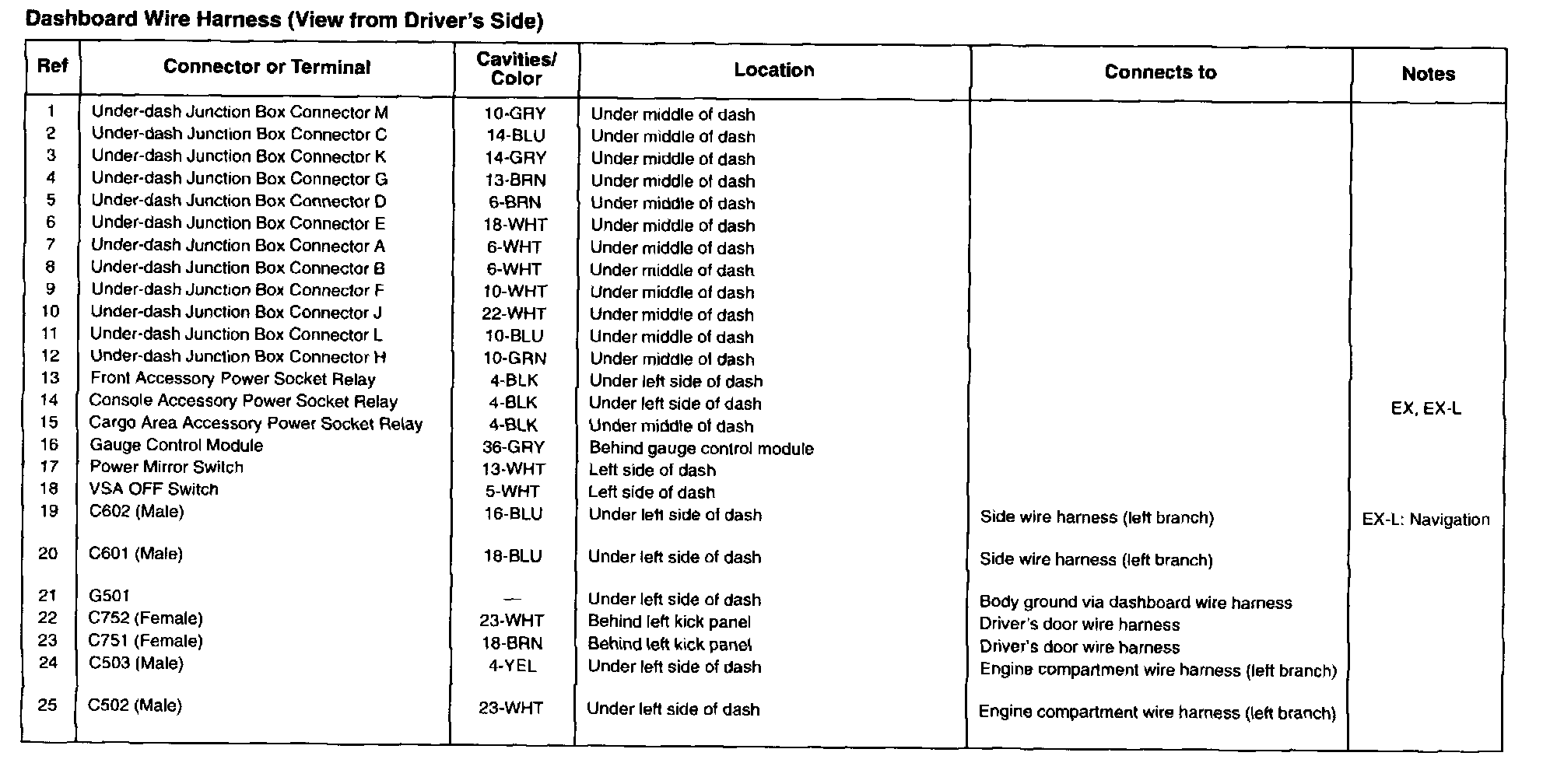 Dashboard Wire Harness (View from Driver's Side):