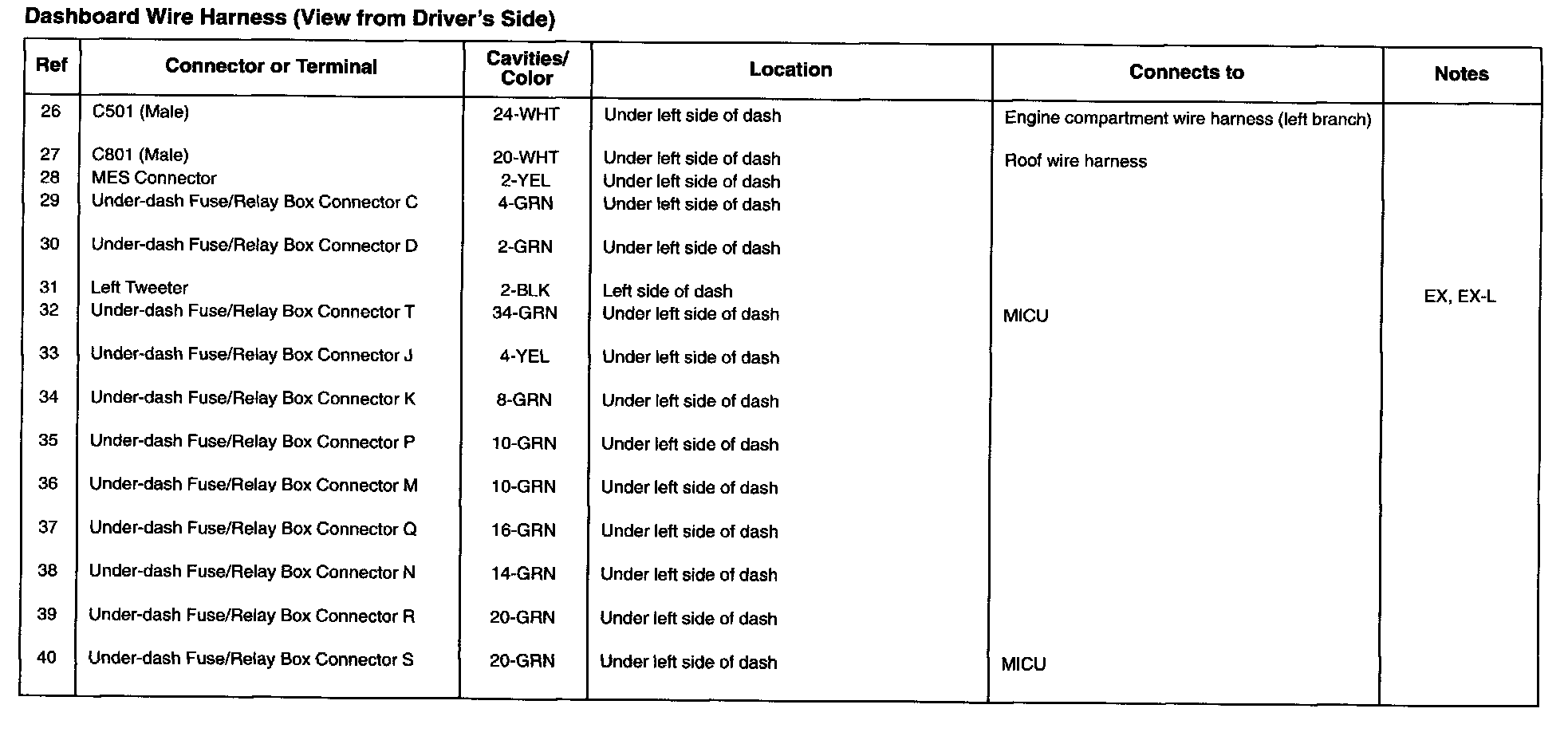 Dashboard Wire Harness (View From Driver's Side):