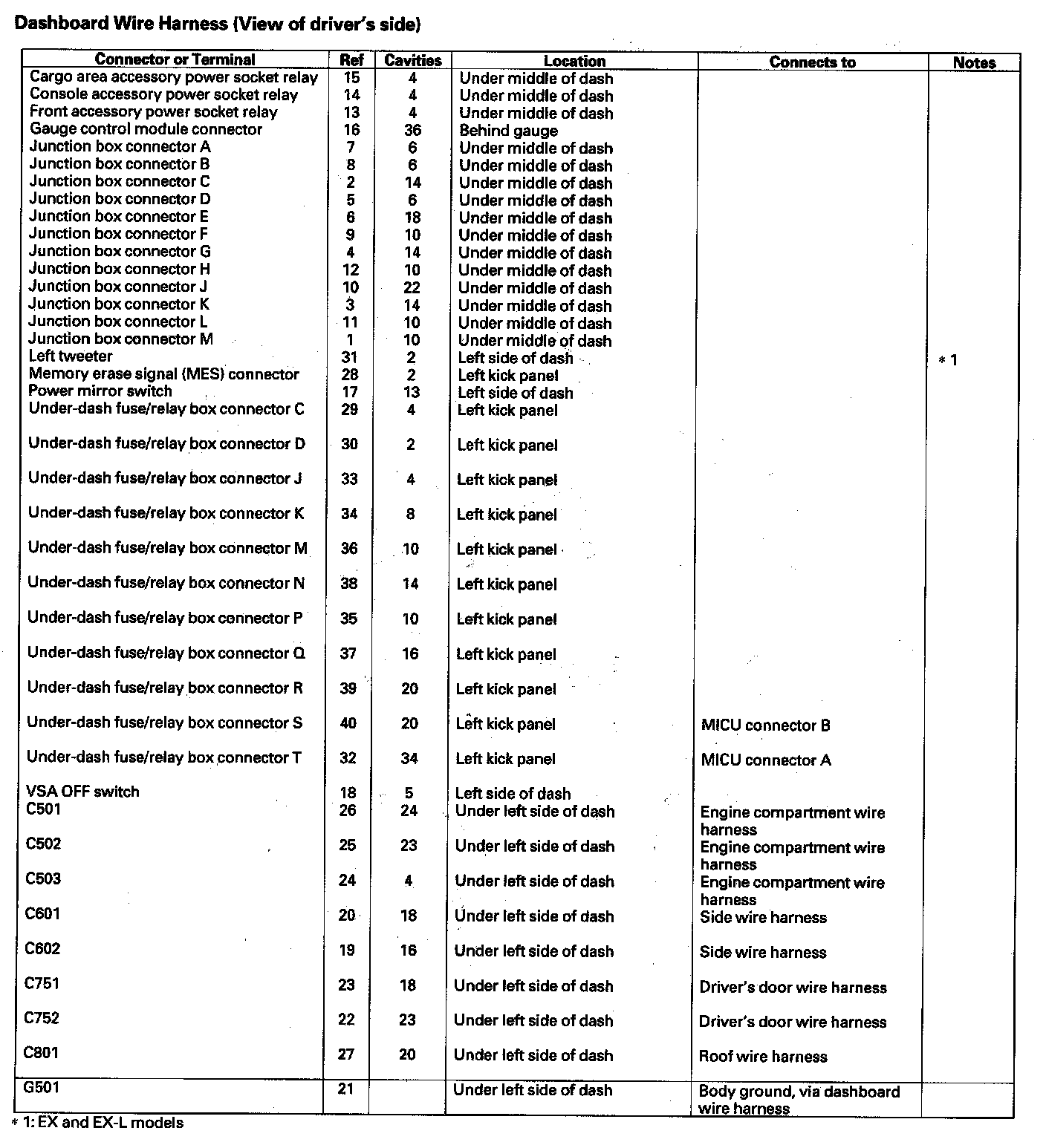 Dashboard Wire Harness (View of Driver's Side)