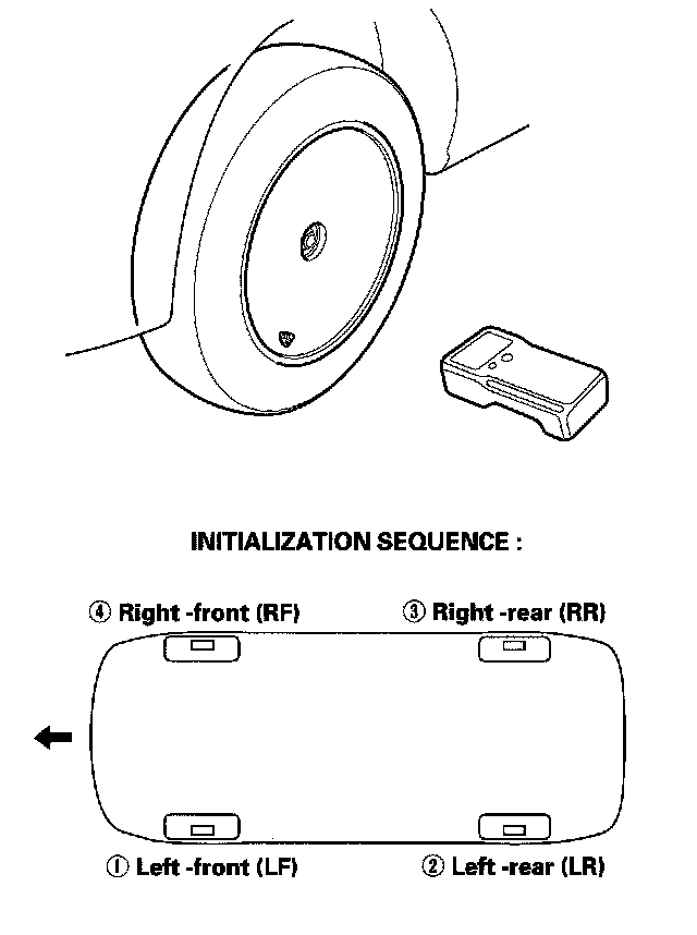 When the activate sensor signal is sent to each wheel using the TPMS sensor initializer tool in sequence, you can locate the tire pressure sensors by the reaction sensor number.