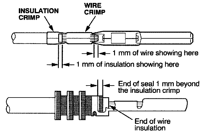 - If you do not have a wire seal, then use the next larger size crimp slot. Position the crimping tool over the insulation crimp section of the terminal, then squeeze the tool with both hands until the stops make contact.