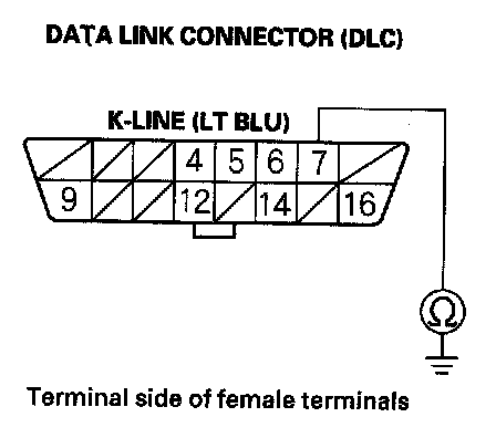 17. Check for continuity between DLC terminal No. 7 and body ground.
