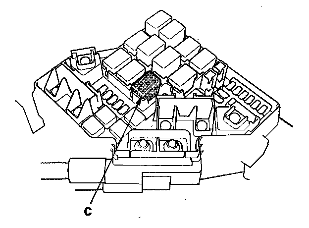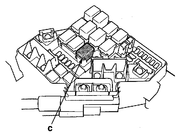 68. Remove PGM-FI main relay 1 (C) from the under-hood fuse/relay box.