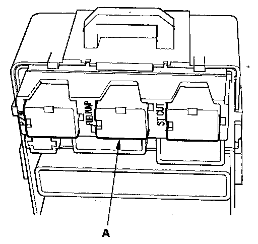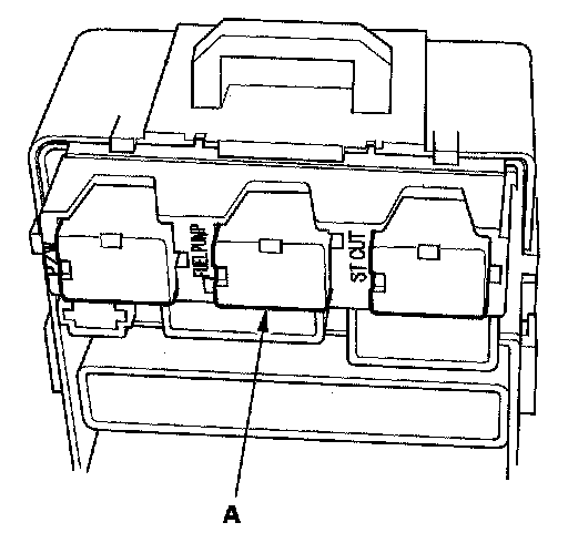 50. Remove PGM-FI main relay 2 (FUEL PUMP) (A) from the under-dash fuse/relay box.