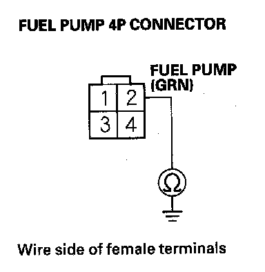 55. Check for continuity between fuel pump 4P connector terminal No. 2 and body ground.