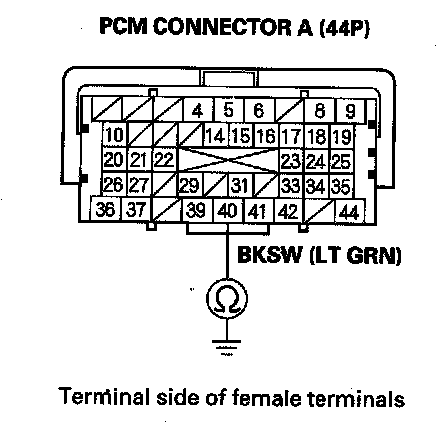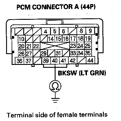 8. Check for continuity between PCM connector terminal A40 and body ground.