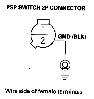 24. Check for continuity between PSP switch 2P connector terminal No. 2 and body ground.